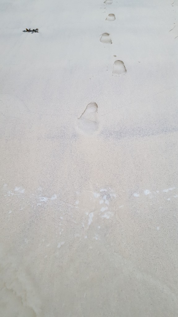 The energy in the water and on the water is buzzing and after a reluctant start, Ruthie and I leave the sea feeling energised and alive, ready for whatever the days brings. All we leave are footprints in the wet sand, we take with us so much more.