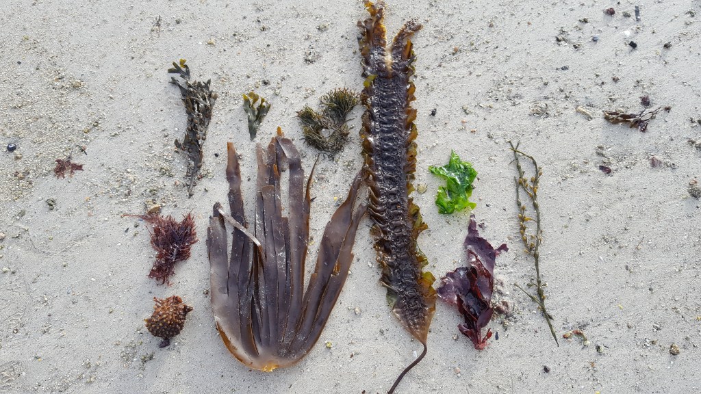 I start my walk meandering across Green Bay. The tide is far out, the channel an empty expanse of wet clay-like sand and heaps of weed. The colours and shapes of the weeds are beautiful.