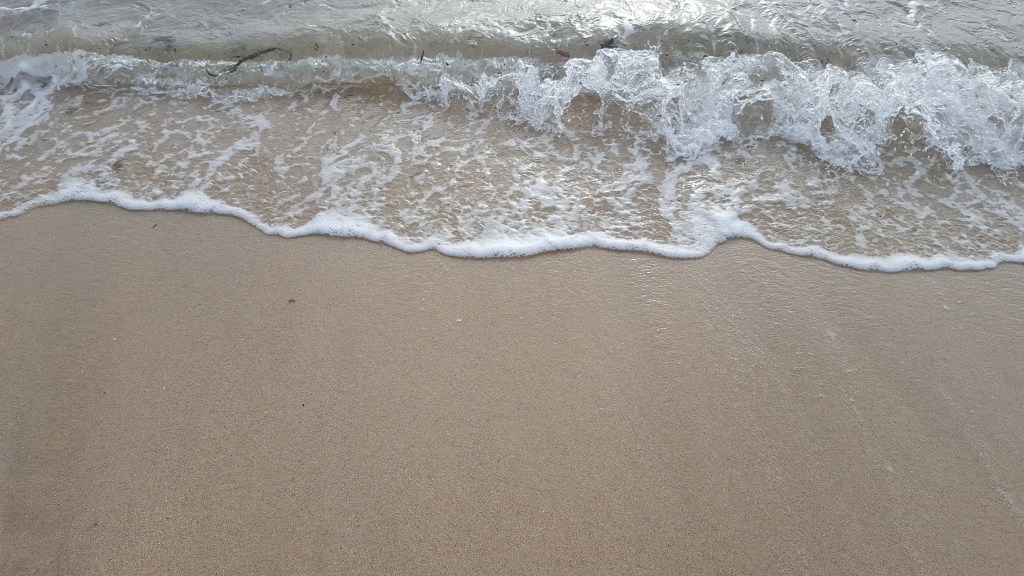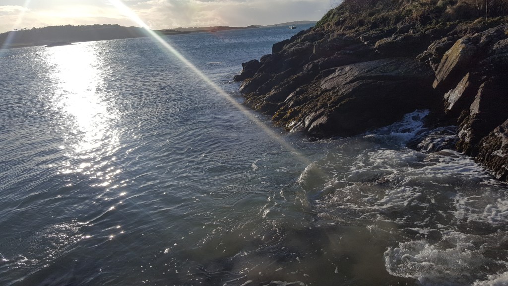 Pale sand banks and dark rocks are slowly submerging beneath the incoming tide. I sit for a while and write some thoughts and ideas for future writing projects.
