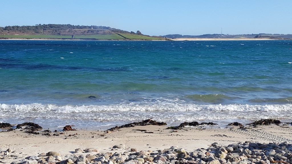 I thought I would put on the blog one of the entries from February 2019, only this one isn’t about swimming. We were staying on Tresco for the half term week, which we will be doing again this year. There were spring tides making high tide very high and low tide empty.