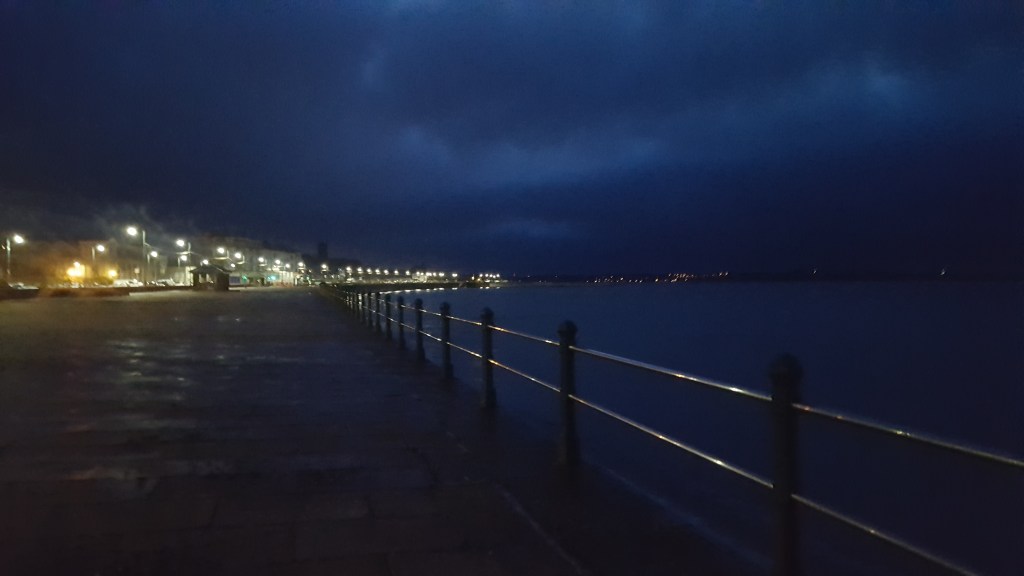I quickened my pace and continued along the prom and soon the sight of the dark sea, the twinkling lights of the harbour and town and the sound of the waves dragging the pebbles about like ripping Velcro made me forget my insecurities.