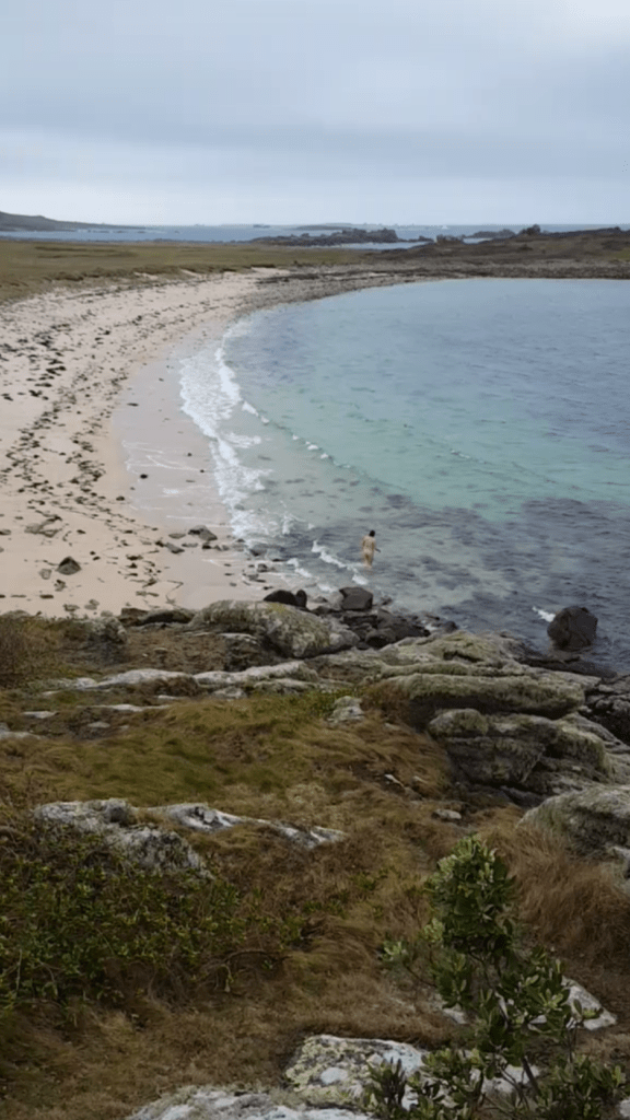 Scratchy brown seaweed scrape over my limbs but feel inviting not frightening. Luckily today Great Par was deserted. There is nothing more free and wonderful as a skinny dip, probably my last one for a while as the Island welcomes back visitors.