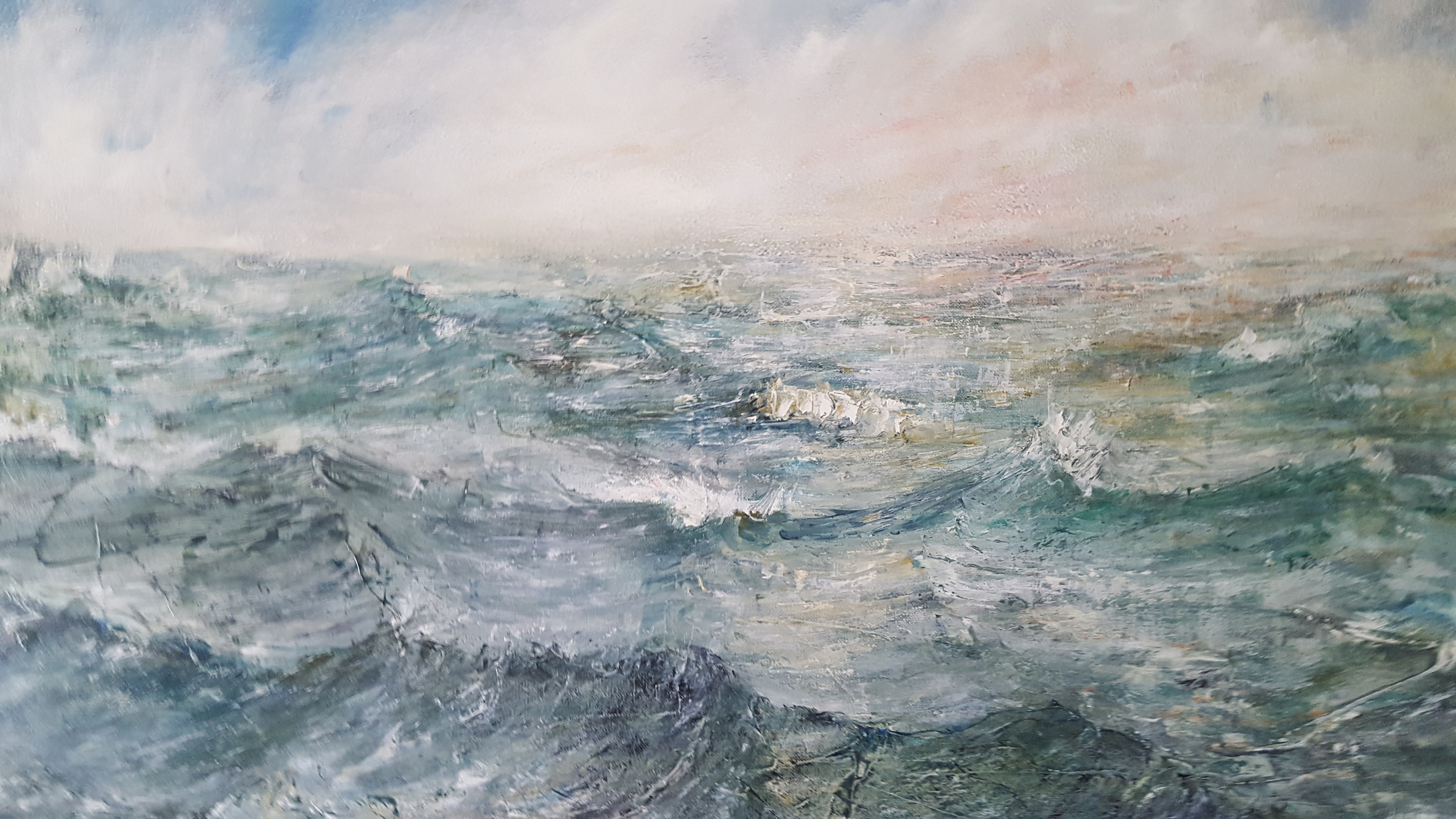 I swim today off Green bay, sheltered from the chilling wind. The air and sun warm my face and the sea is a brilliant green as the tide ebbs. Golden sunbeams dance through the water onto my skin, encasing my arms like bracelets. As the sun dips behind a passing cloud warmth is lost and the sea turns to liquid pewter. Along the midline, a dazzling ribbon of silver light splits my world in two. The free and enchanting underwater world and the comforting, known, skyward world.