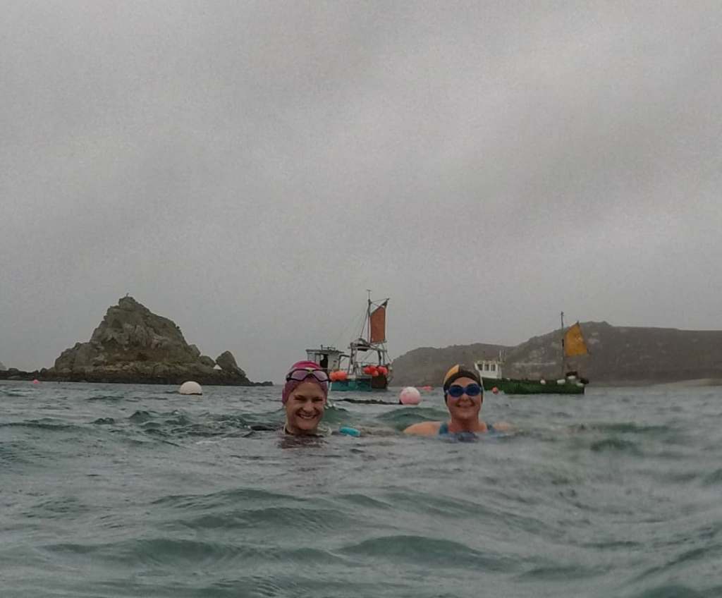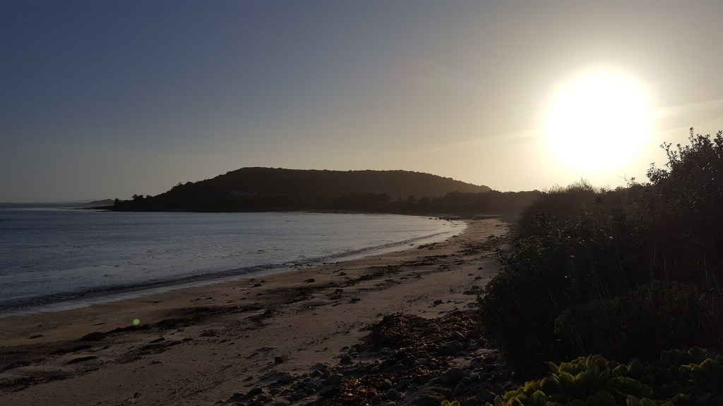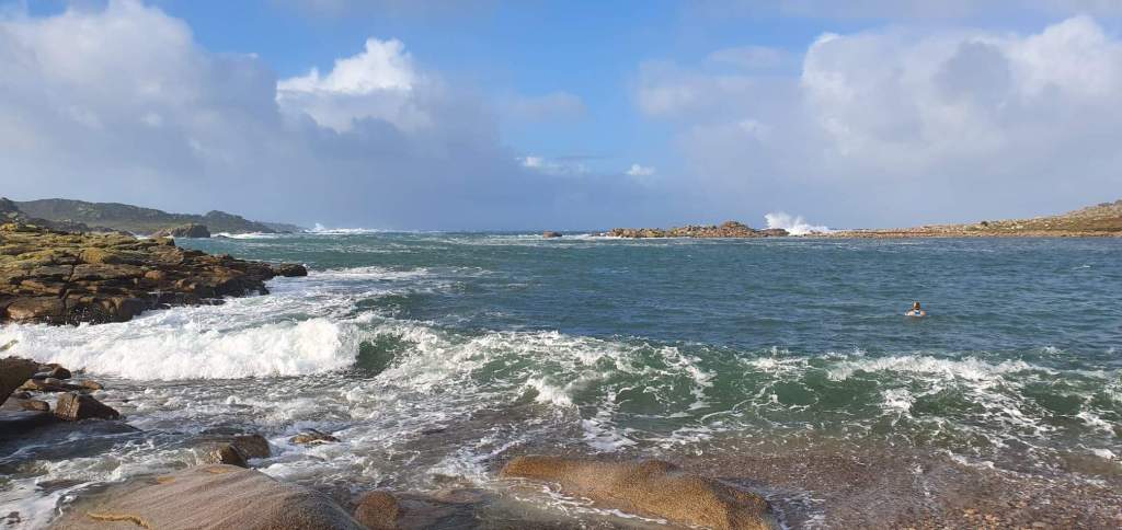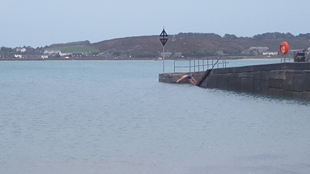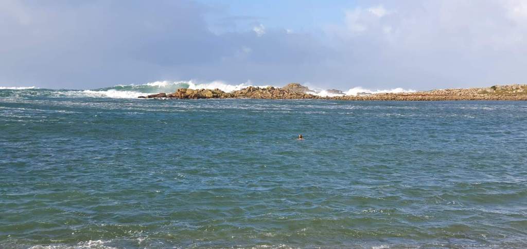 I swim at Great Par where the large arching bay of water holds barely a ripple. A hush of silence the only sound.