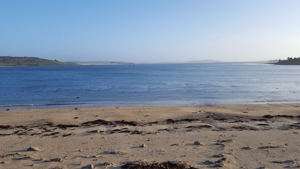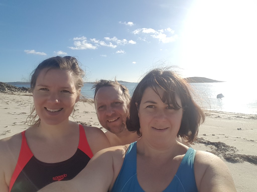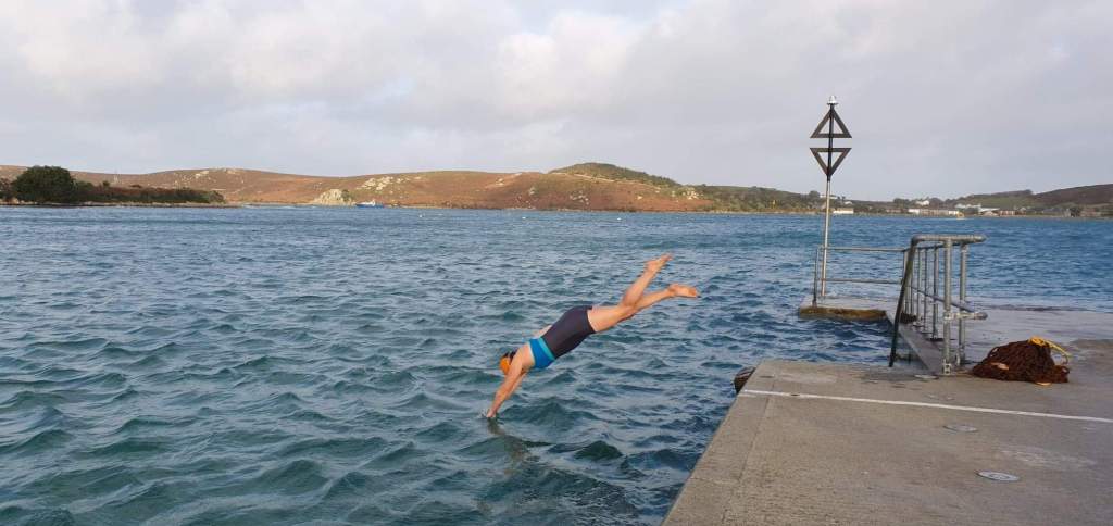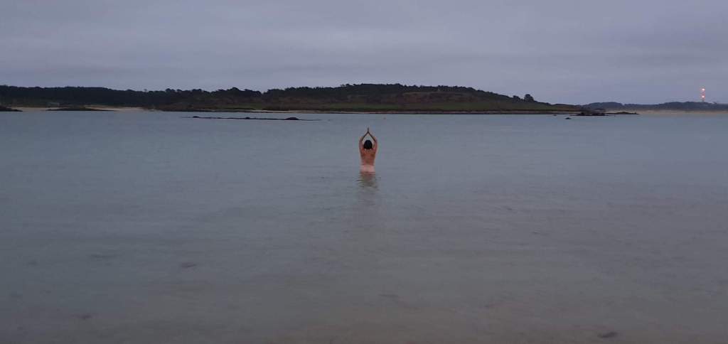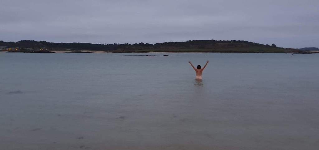 The water is cold, now about 7°, but luscious as my limbs move freely in its glassy depths. I can not understand how water can look so green and so clear at the same moment. Today it is so clear that as I peer down from the surface I can pick out individual grains of sand. Even the seabed is still, nothing dares to move, to break this descended hush. Out to the buoy and back, I try to create as little movement and sound as possible. My few moments of total peace before the children return from school.